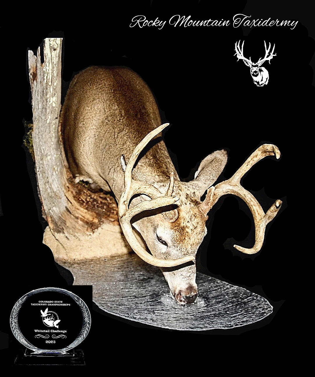 Drinking whitetail deer. 2023 Colorado State Taxidermy Championships best whitetail