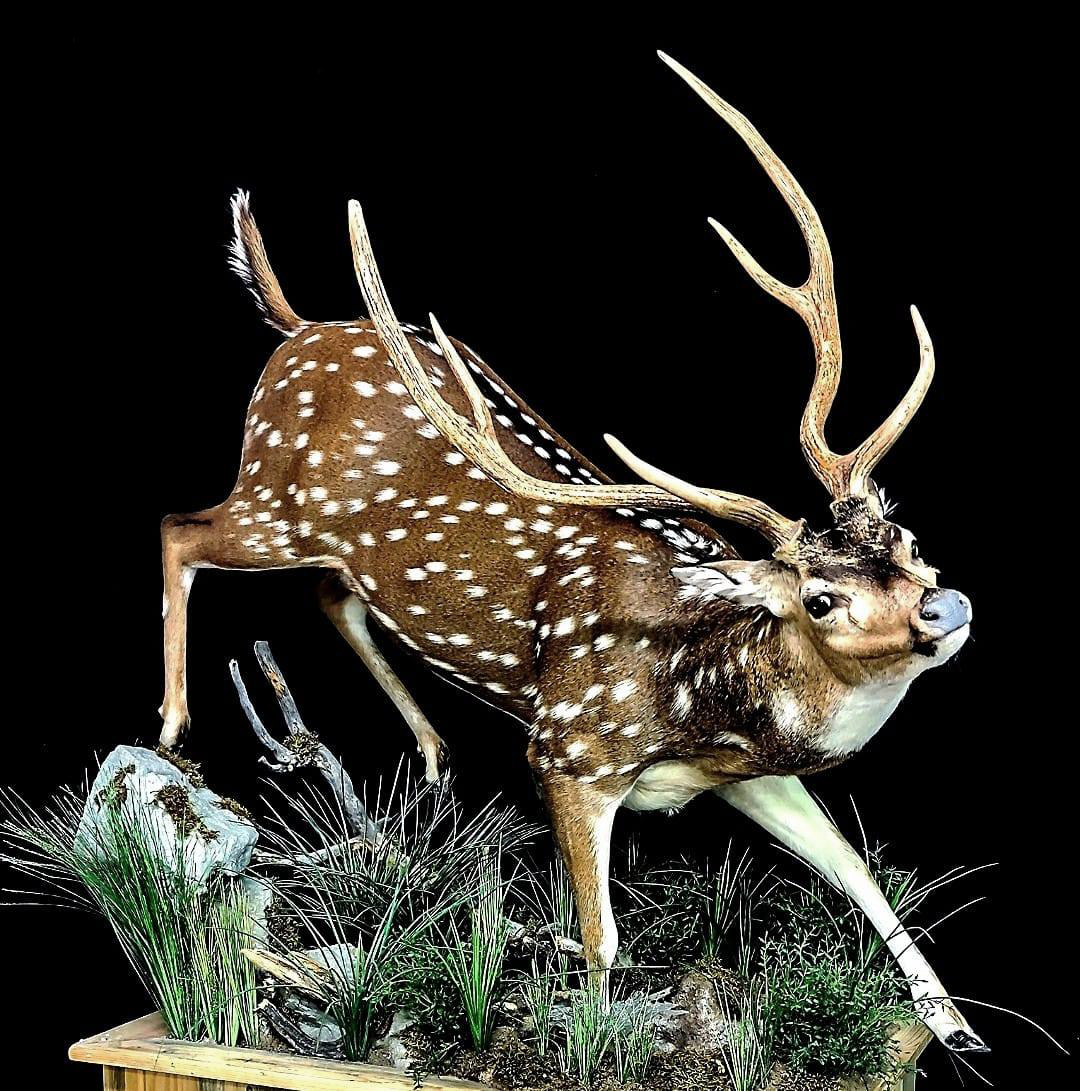 Life-size Axis deer. 2021 western regional Taxidermy competition taxidermist choice most artistic.